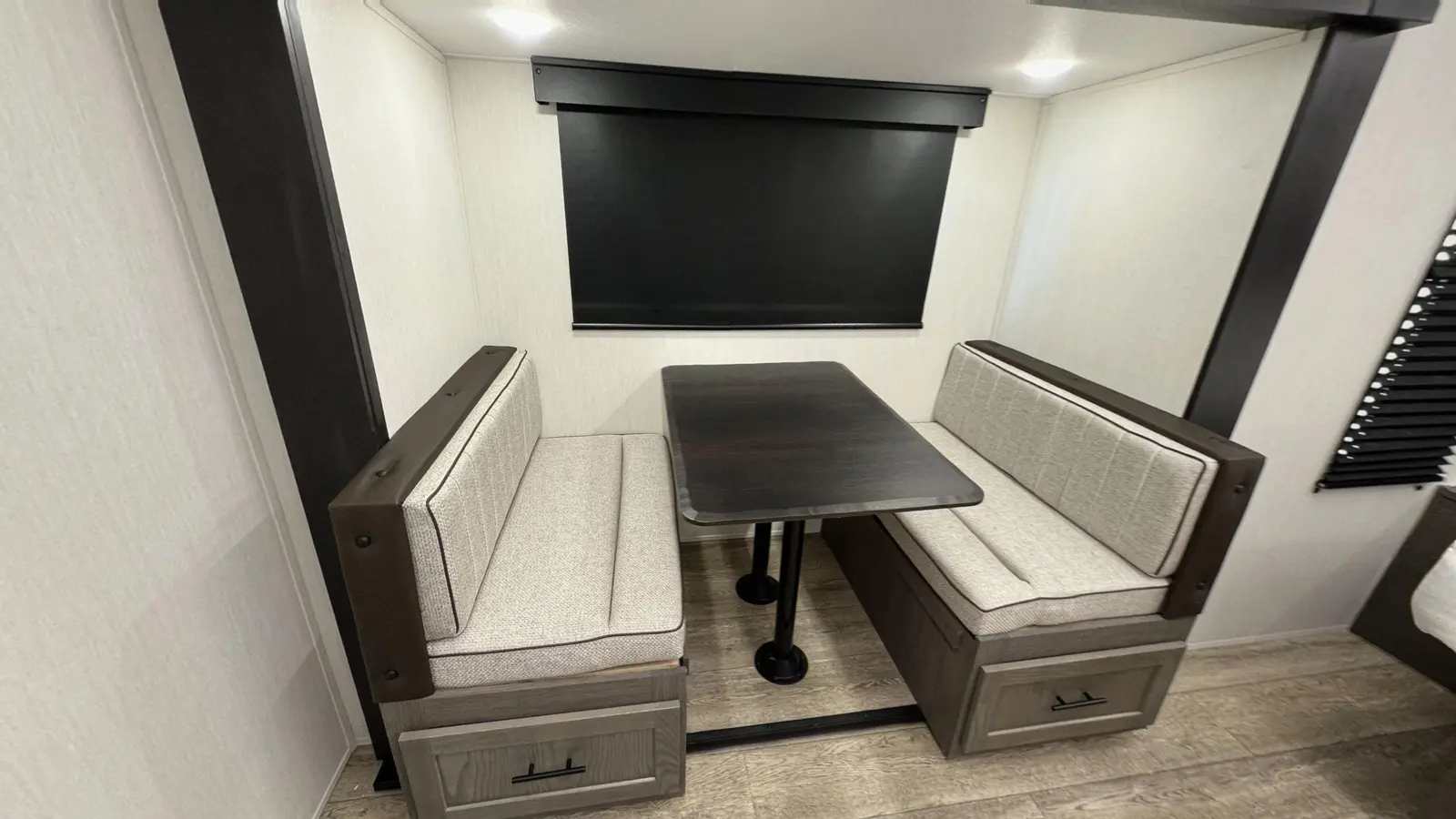 Coming in at 23 ft 1 in, the Alpha Wolf 17CB by Forest River is the shortest and lightest model in our lineup. This makes for an easy towing experience and wide range of campsites available to you on your journeys. In the rear you'll find a full bathroom that features a spacious corner shower, medicine cabinet and plenty of linen storage. Chef's will appreciate the well-equipped kitchen that includes a 12-volt refrigerator, oven, microwave, farm style sink and dinette that converts into a bed.
