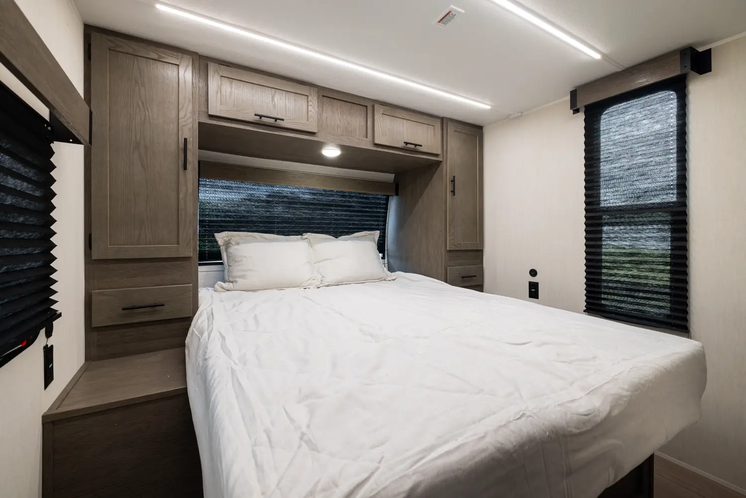 Looking for a lightweight and affordable option for your family? The Alpha Wolf 26DBH by Forest River may be the perfect fit with a smartly designed bunkhouse floorplan. Featured in the rear are double stacked bunk beds and a full bathroom with an entry/exit door. The kitchen is well equipped with a full-size pantry, 12-volt refrigerator, farm style sink, oven and a microwave. The-U-shape dinette and living room sofa both double as extra sleeping when not in use. Up front is a queen size bed.