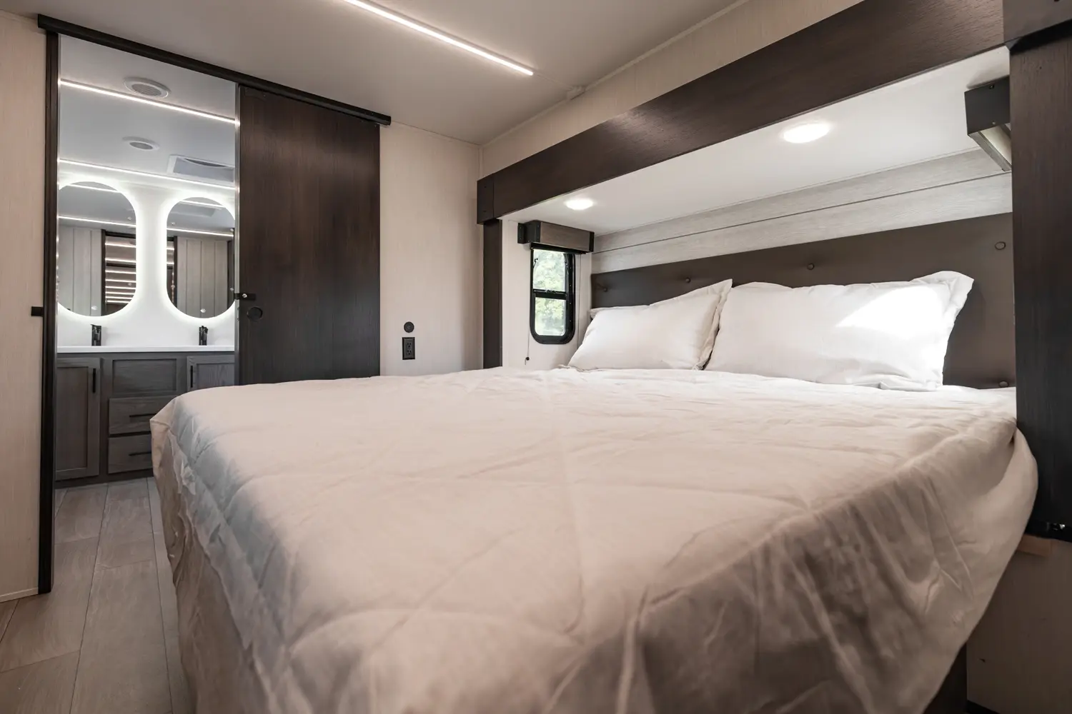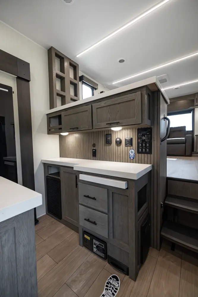 If you enjoy entertaining guests, you're going to love the Arctic Wolf 3950SUITE by Forest River! Our front living room features two tri-fold sleeper sofas and relaxing theatre seating directly across from the cozy fireplace. The island kitchen is highlighted by two 10 cu. ft. refrigerators, 30" microwave, oven, dinette seating and a half bathroom. In the primary suite you'll find a king size bed, fireplace, ample wardrobe space and an incredible bathroom with washer and dryer prep.