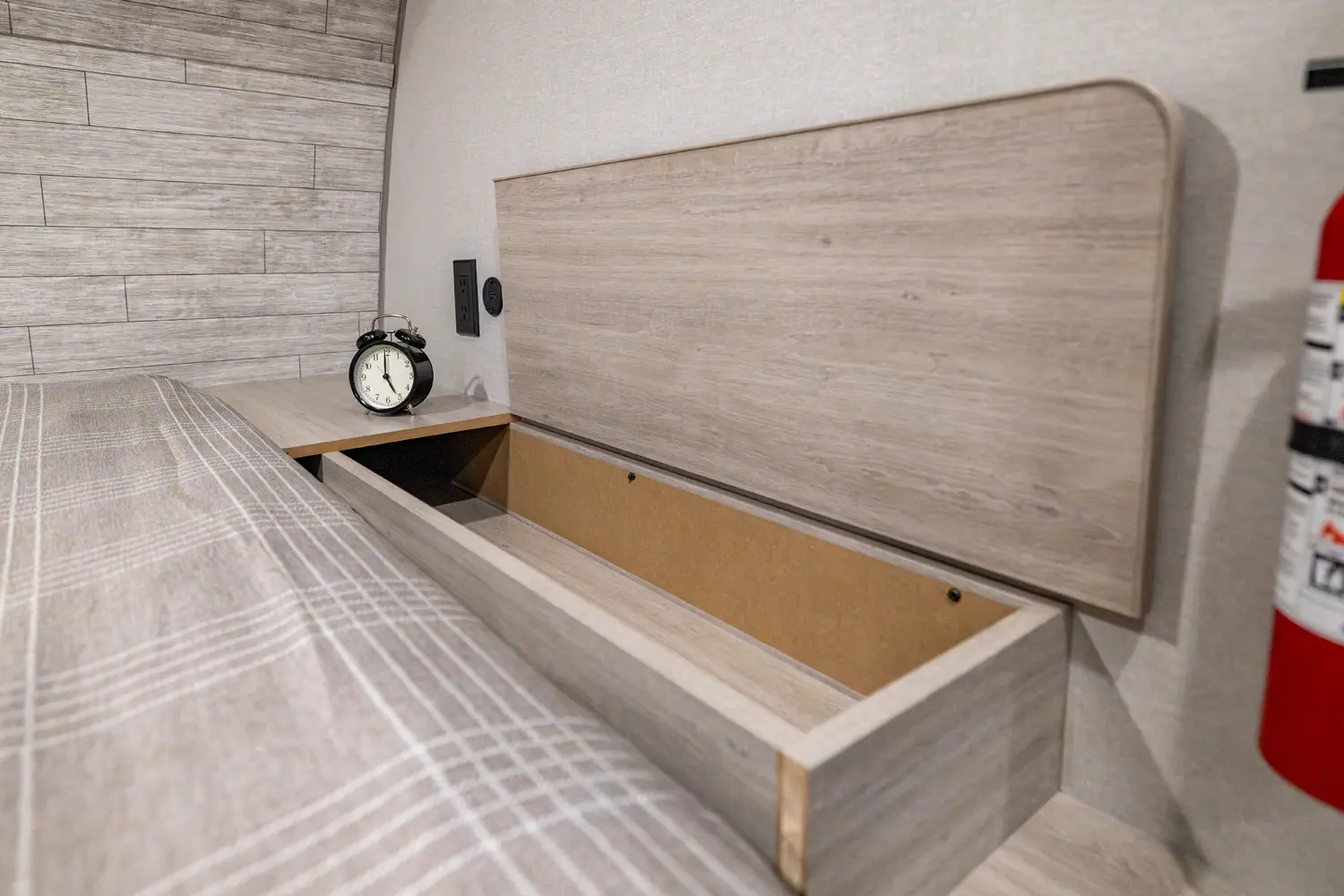 • Easy Access Kickboard Storage Underneath Jiffy Sofa