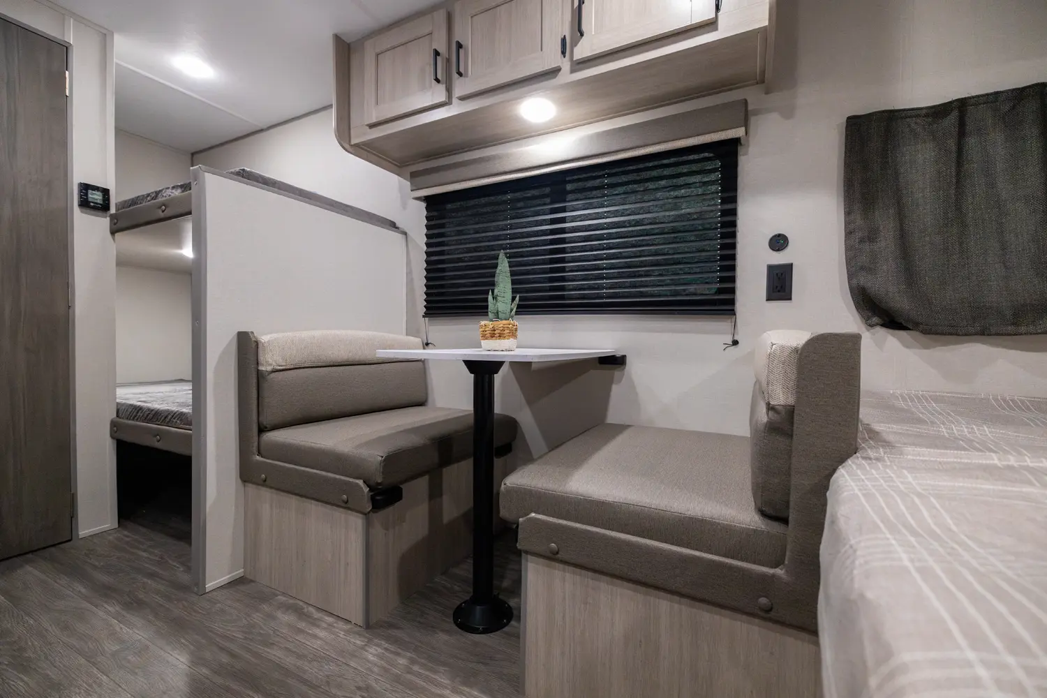 Small but versatile, featuring bunk beds for families or friends. Lightweight construction ensures easy towing and flexible campsite options while maintaining comfort for outdoor adventures.