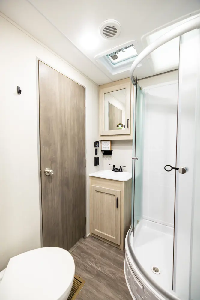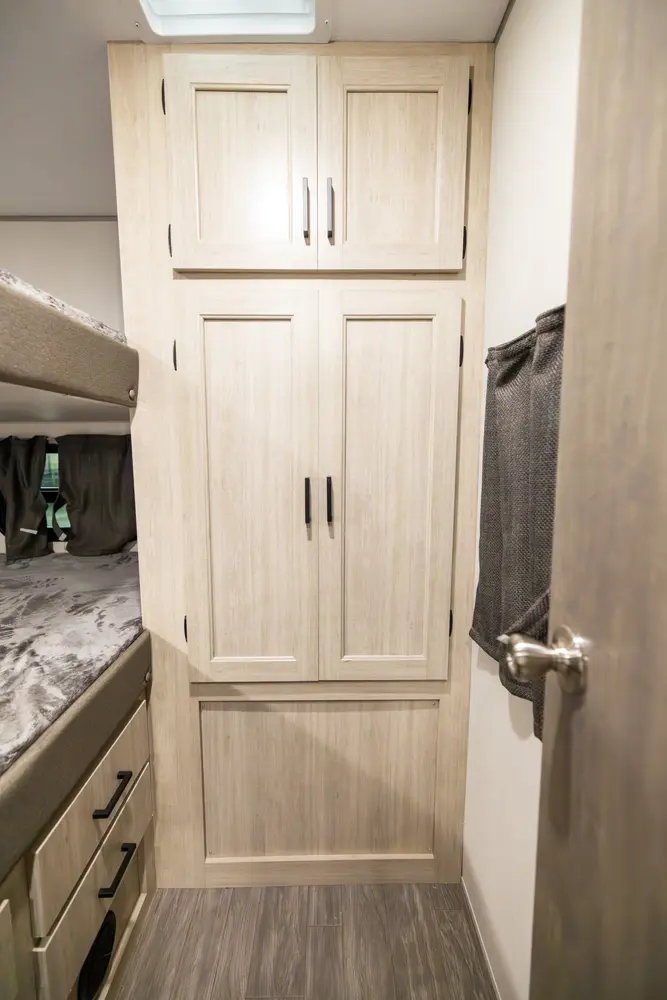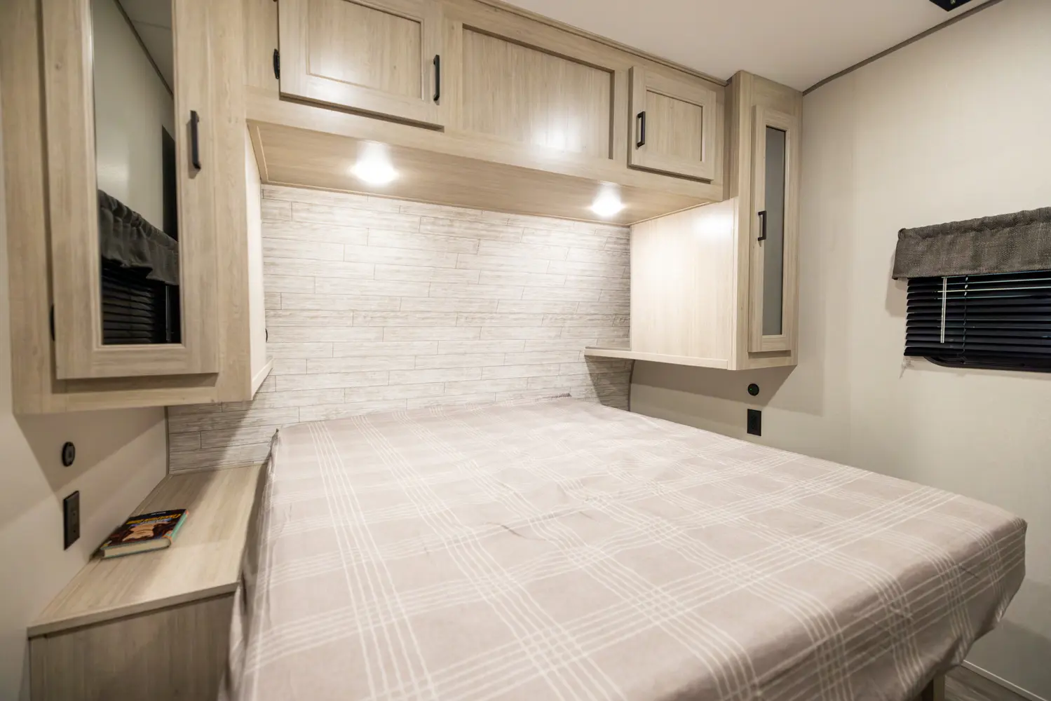 Spacious 36-foot bunkhouse trailer designed for family adventures. Three queen beds provide room for everyone. Durable construction, large fresh and gray water tanks, and a 21-foot awning make it perfect for road trips or back-country getaways.
