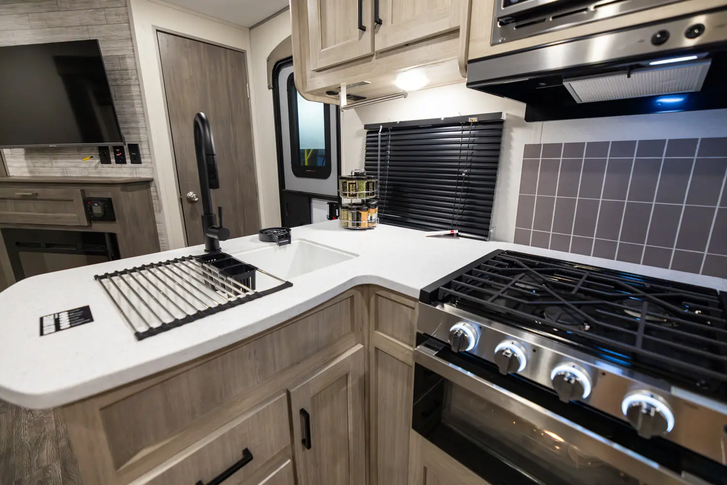 • Solid Surface Countertops in Kitchen Galley (No T-Mold)