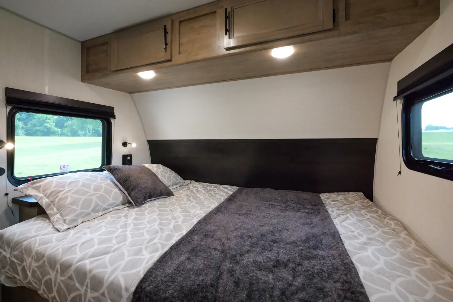 The 17JWBL is the embodiment of the family camper. The large U-shaped dinette offers great seating, full-size pull-out drawers, as well as additional sleeping for two adults. The master queen bed offers comfort, while housing huge under bed storage. A functional modern chef’s kitchen, and bathroom round out the interior of this class leading unit. The exterior under awning space provides ample entertaining space with the exclusive Pup kitchen, LED Power awning, exterior speakers, and TV bracket.