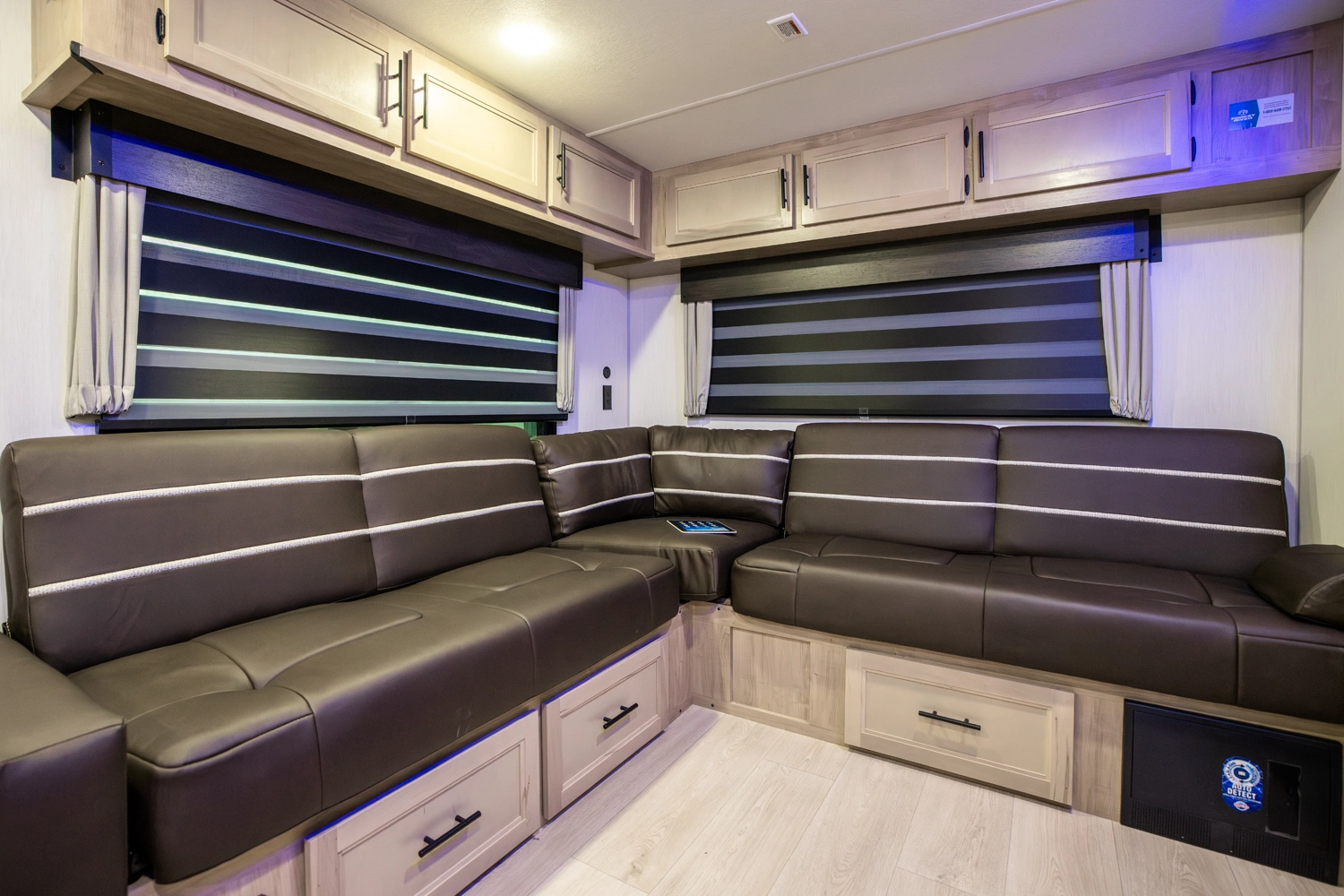 The Black Label version of the Grey Wolf 27LH is an intelligently designed entry level travel trailer designed for modern camping. Notable Black Label upgrades include fiberglass gel coated side walls, frameless windows, thermos-foil arctic insulation and solid surface countertops.