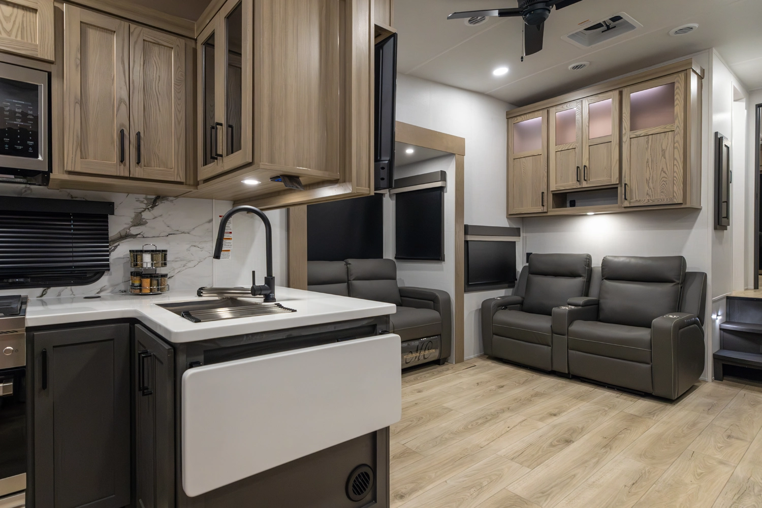 WHEN YOU WISH TO UPGRADE YOUR CAMPING EXPERIENCE, EMBRACE OUR CLASSIC LINE OF 5TH WHEELS. Elevate your journey with the quintessence of Flagstaff's first-in-class quality and exceptional craftsmanship, now augmented by a host of supplementary features to enrich your journey. Anticipate superior offerings such as king-sized beds, effortless electric auto-leveling, shielded metal awning covers, exquisite upgraded solid-surface countertops, and the luxury of residential soft-close drawers. Every Classic 5th wheel now comes with an option for our power package, propelling you to destinations you once deemed beyond reach.