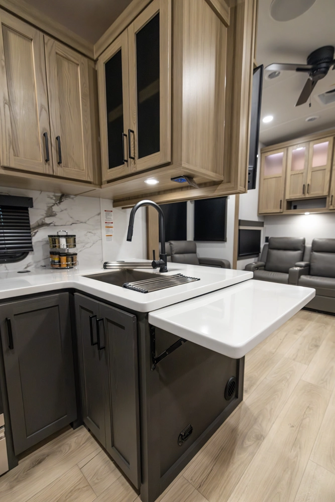 • Power Awning w/ Adjustable Rain Dump & LED Light Strip