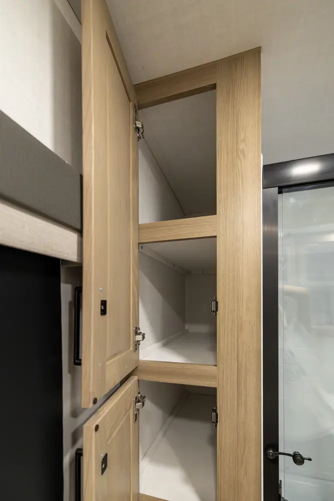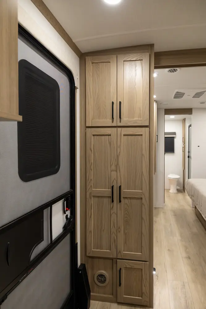 EXQUISITE, EXPANSIVE INTERIORS AS THE NORM. WELCOME TO THE CLASSIC SERIES, REDEFINING THE CAMPING EXPERIENCE THROUGH AN ARRAY OF REMARKABLE FEATURES. With its inviting open floorplans and ample storage capacity, there's room for those cherished guests or family you wish to bring along. As you nestle into the embrace of a plush king or queen sized bed, the restlessness of your adventures fade away. Through its efficient layout and panoramic windows, the classic travel trailers offer you an opportunity to luxuriate in your surroundings, all while enjoying the comfort of your serene interior.