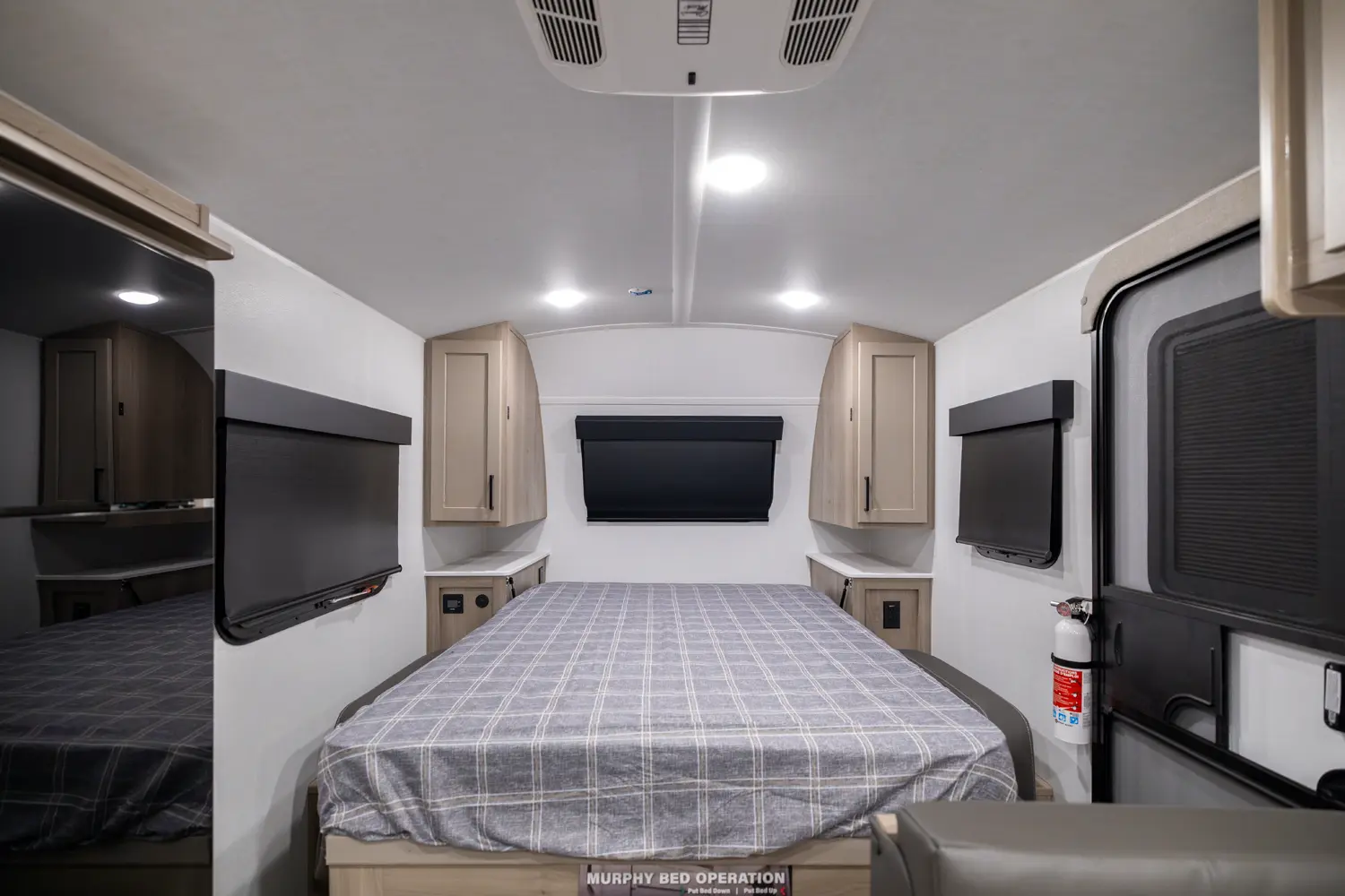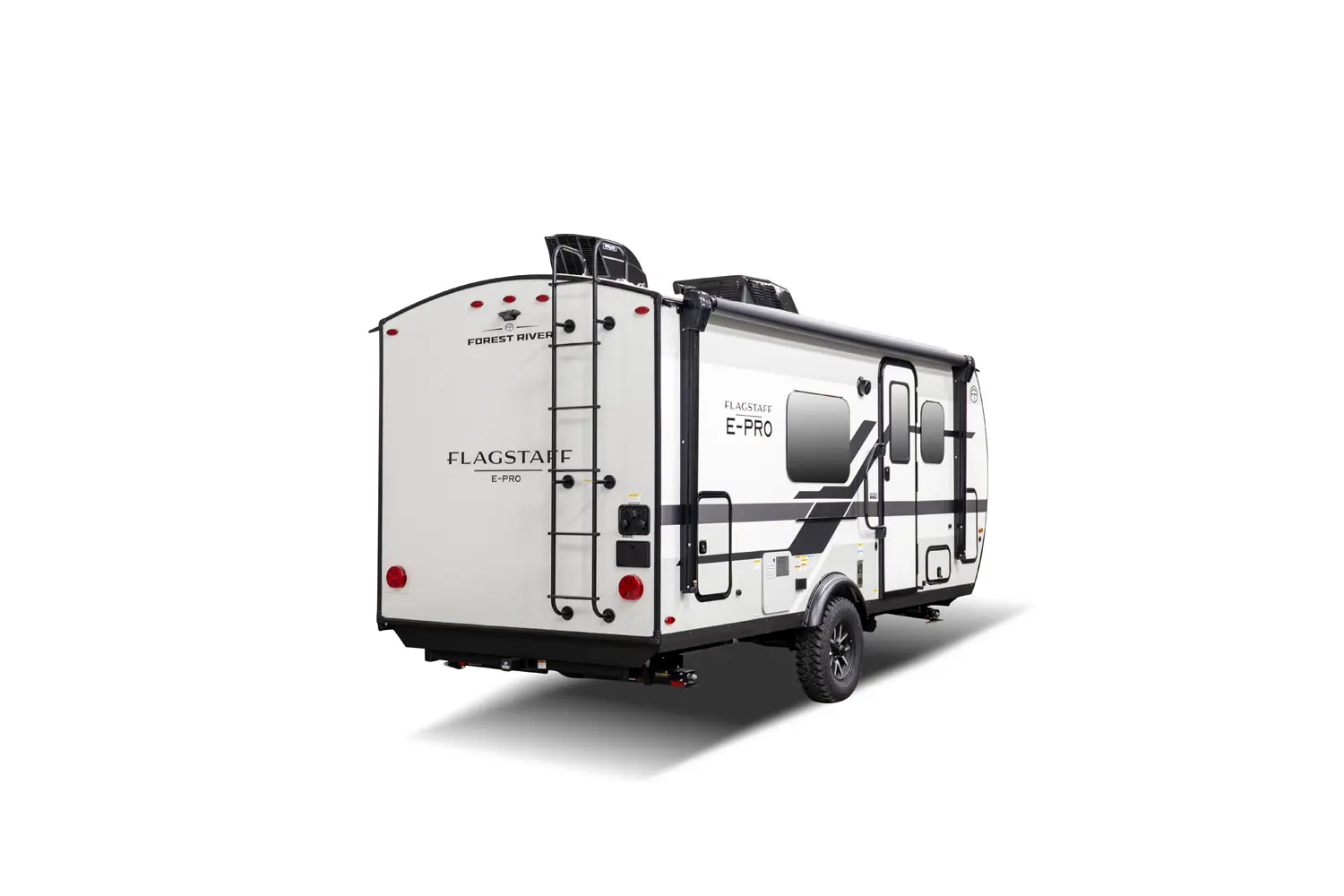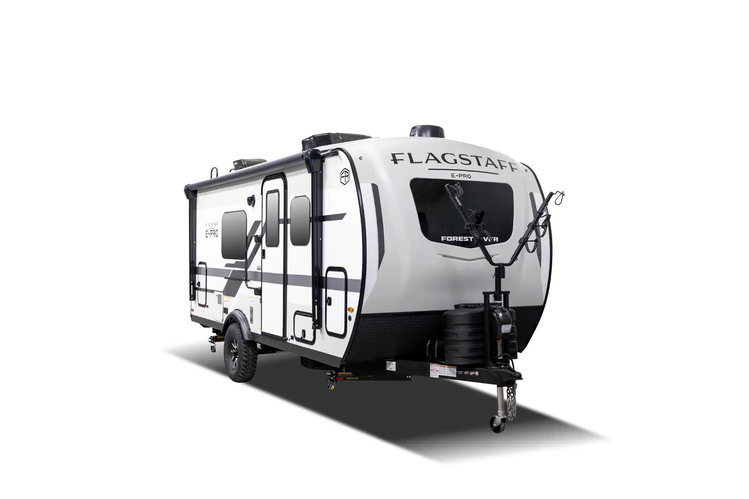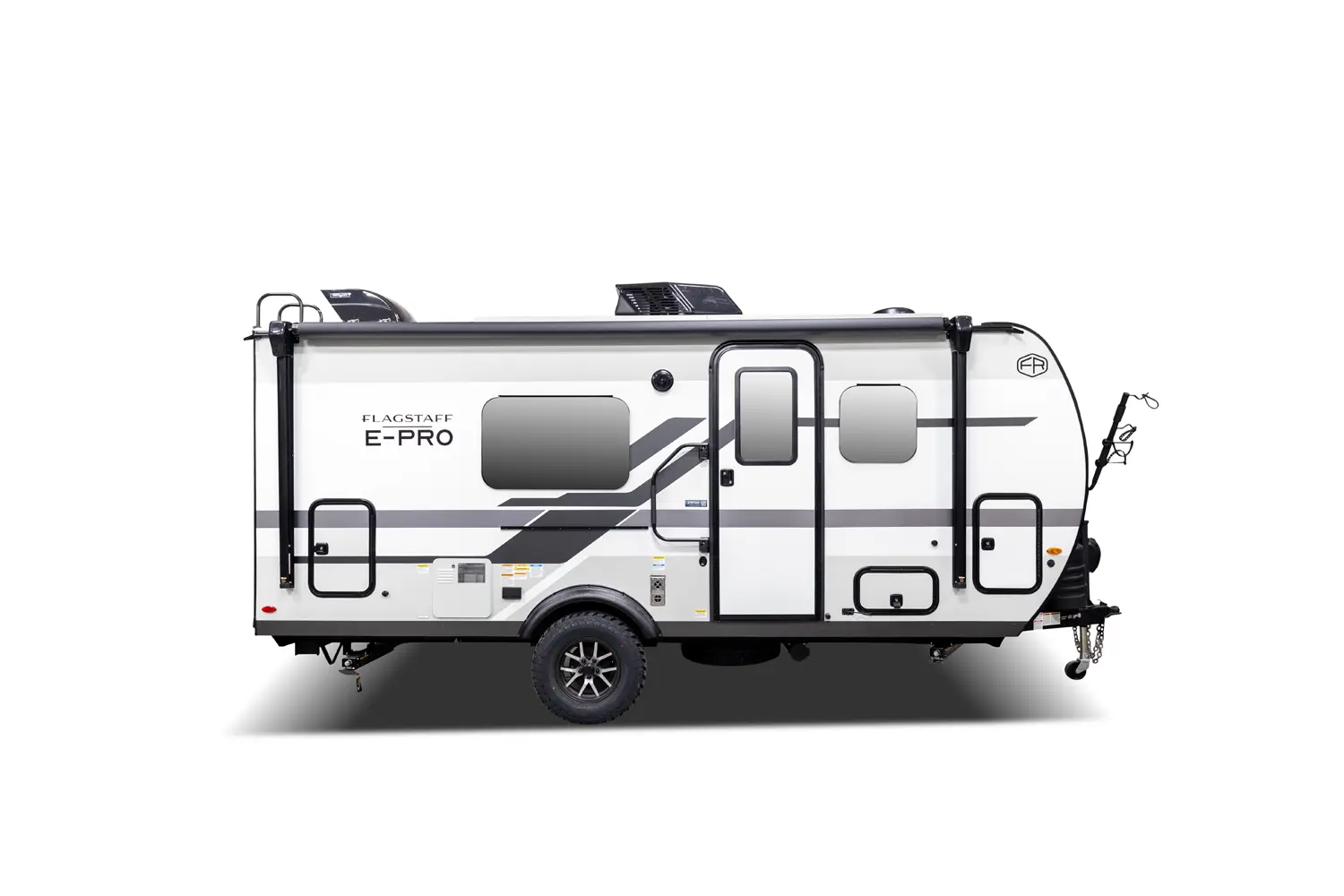 In this Flagstaff E-Pro E19FDS, you will find that the full-length bathroom and large shower in this model is the overwhelming highlight. The Murphy bed and kitchen slide in this 20’ travel trailer makes the living room in this unit so spacious. The door side dinette with a large window, gives this unit a “right at home” feel. This single axle trailer checks so many essential boxes.