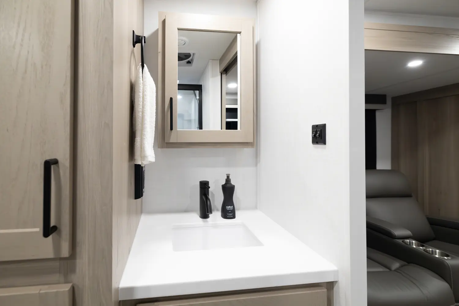 • Platinum Package: Auto Leveling, Frameless Windows, 1800W Inverter, MORryde Strut Assist Entry Step, Dual 30 LP Tanks