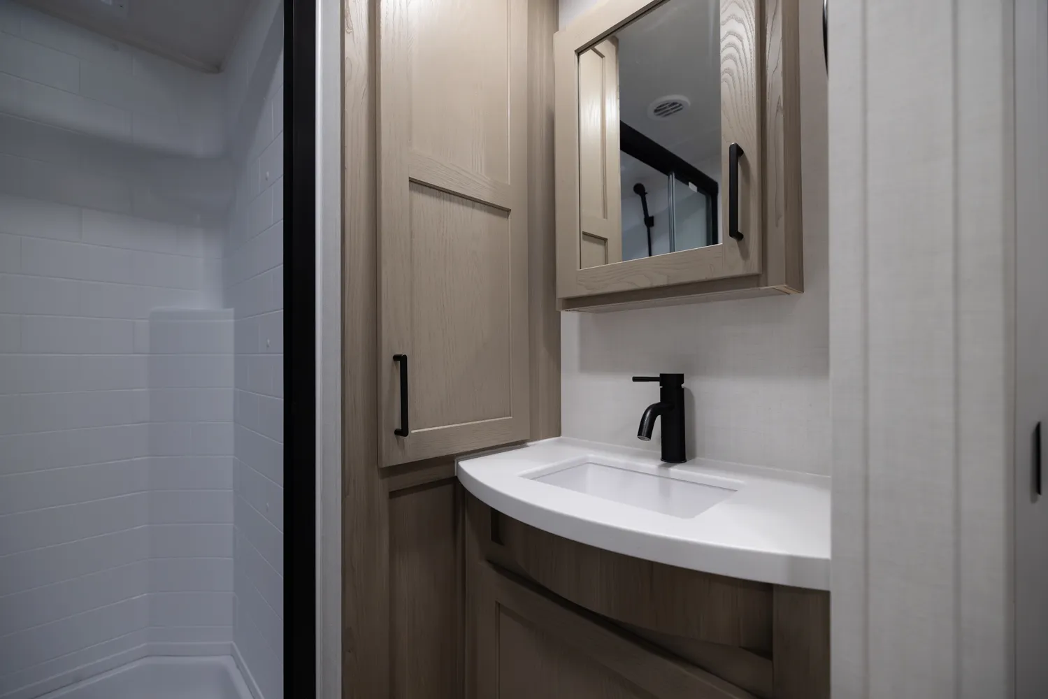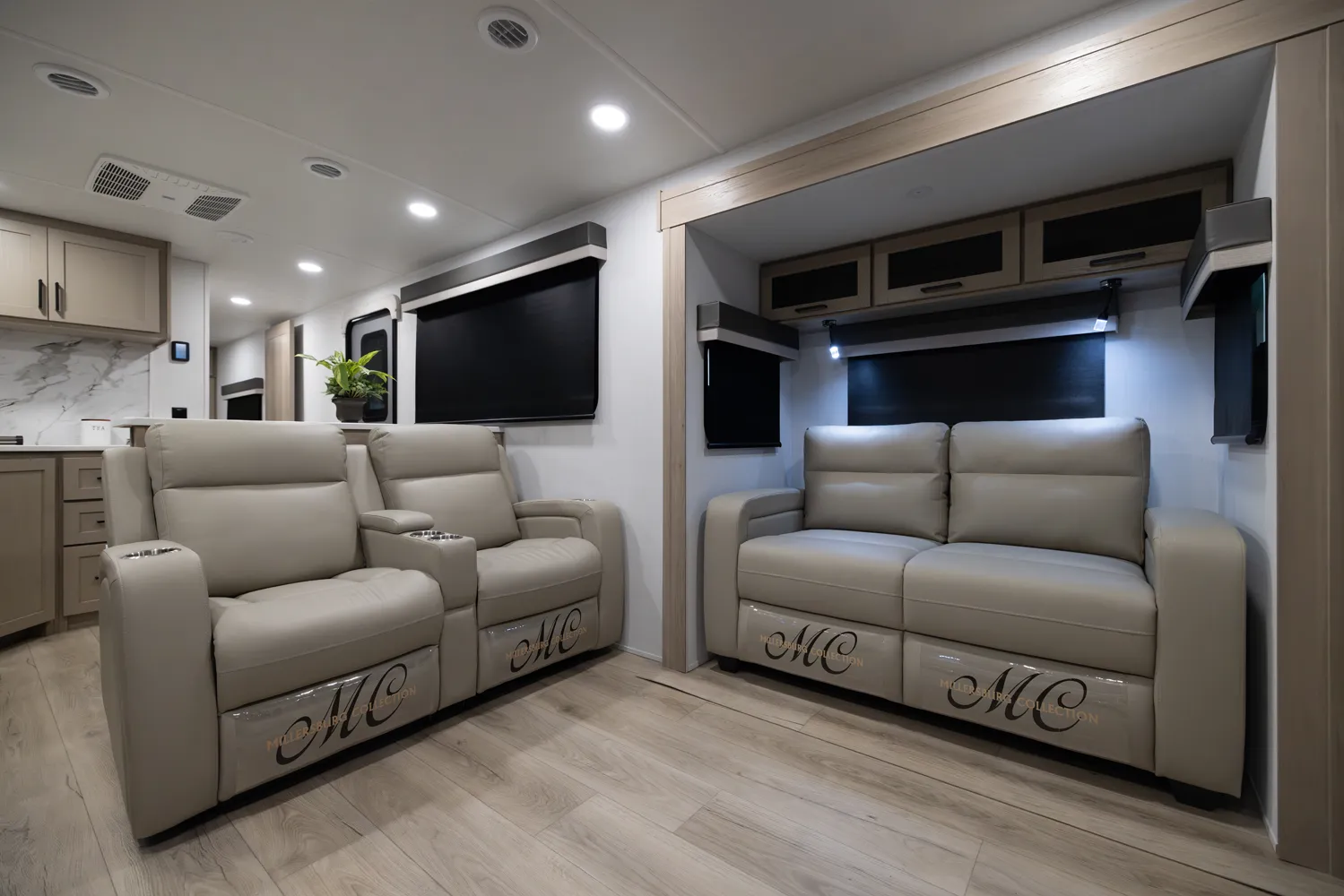 • Platinum Package: Auto Leveling, Frameless Windows, 1800W Inverter, MORryde Strut Assist Entry Step, Dual 30 LP Tanks