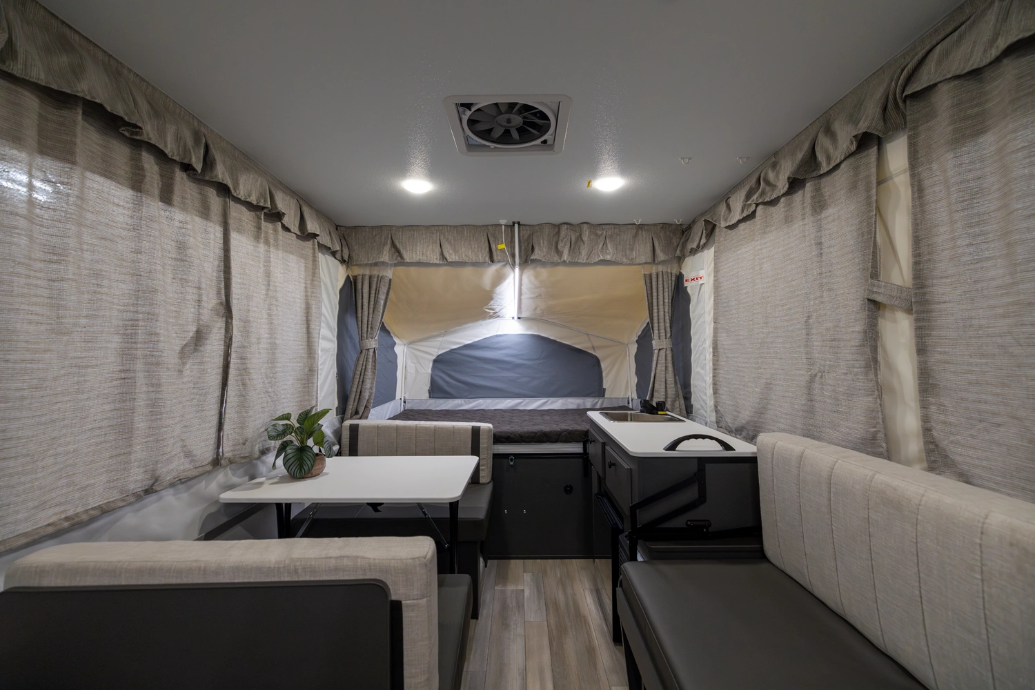 MAXIMIZING YOUR INVESTMENT FOR THE LONG HAUL. Elevate your camping experience with the unmatched quality of the MAC series line, enhanced by a host of additional features. Imagine the comfort of a Create-a-Breeze fan for optimal ventilation, the convenience of a power roof lift, an outdoor grill for culinary adventures, four stabilizer jacks for stability, and the warm embrace of brilliant LED awning lights that gracefully guide you back to your camper as the sun sets. Embrace the luxurious side of camping with your Flagstaff tent camper, where 'roughing it' becomes a thing of the past.
