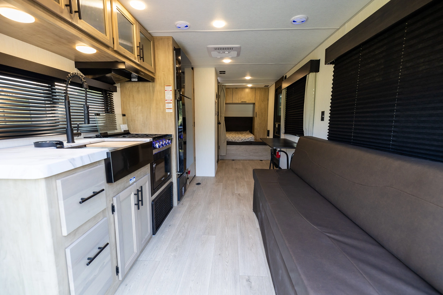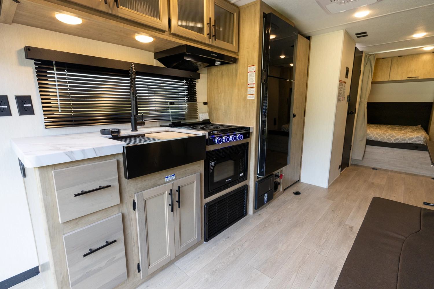 The Wolf Pup 18RJB by Forest River is a versatile travel trailer that offers a unique camping and cargo-hauling experience. The innovative ramp door can be converted into a patio, extending your living space and creating a perfect outdoor entertaining area. The flexible interior layout features a collapsable sofa and removable table, allowing you to maximize the garage space for your toys and gear. With a full-size bathroom, you can enjoy the comfort of home while on the road.