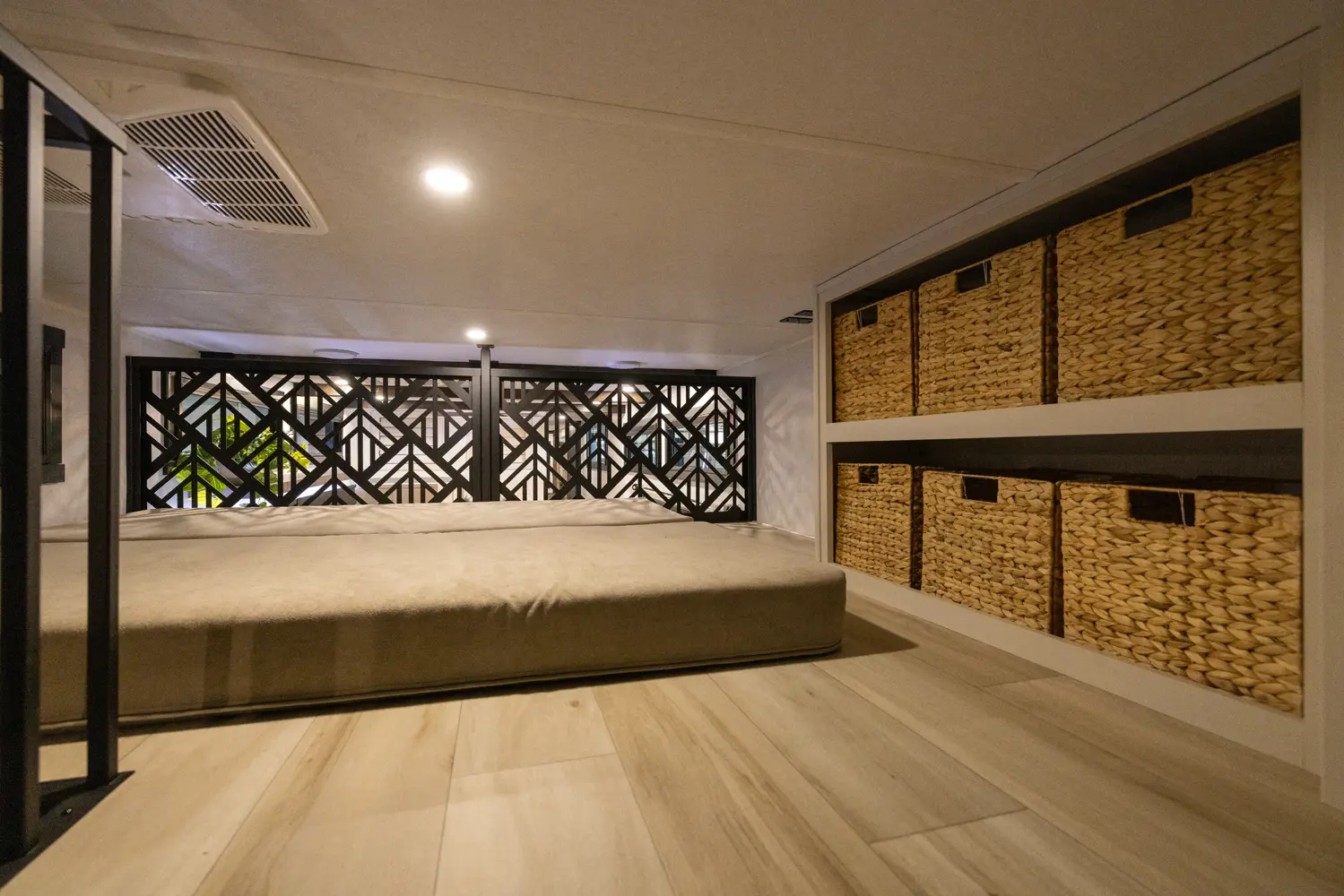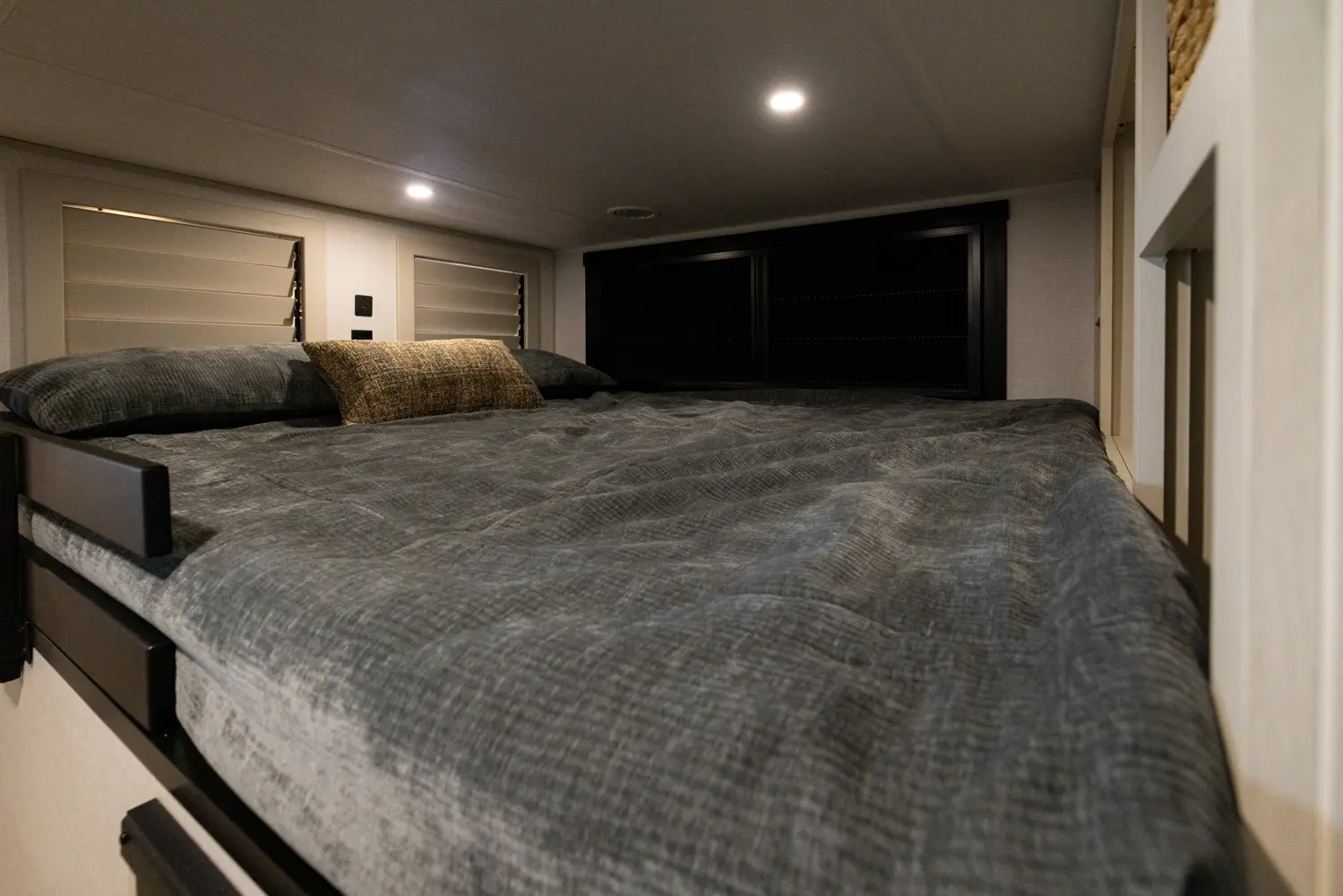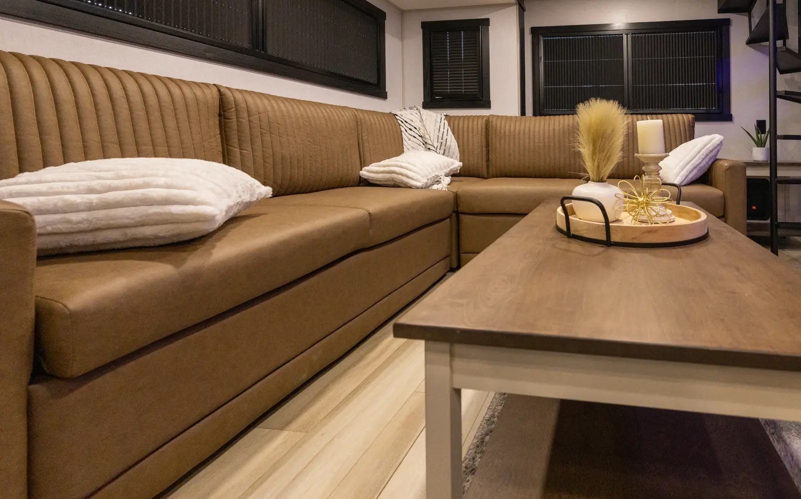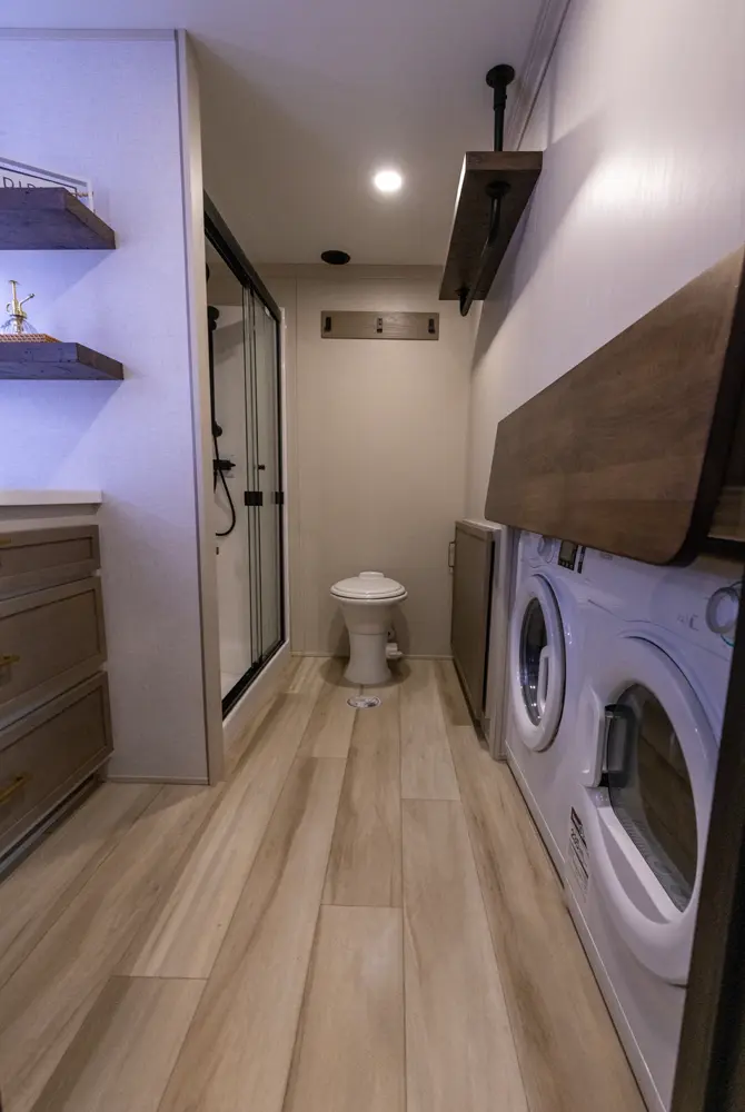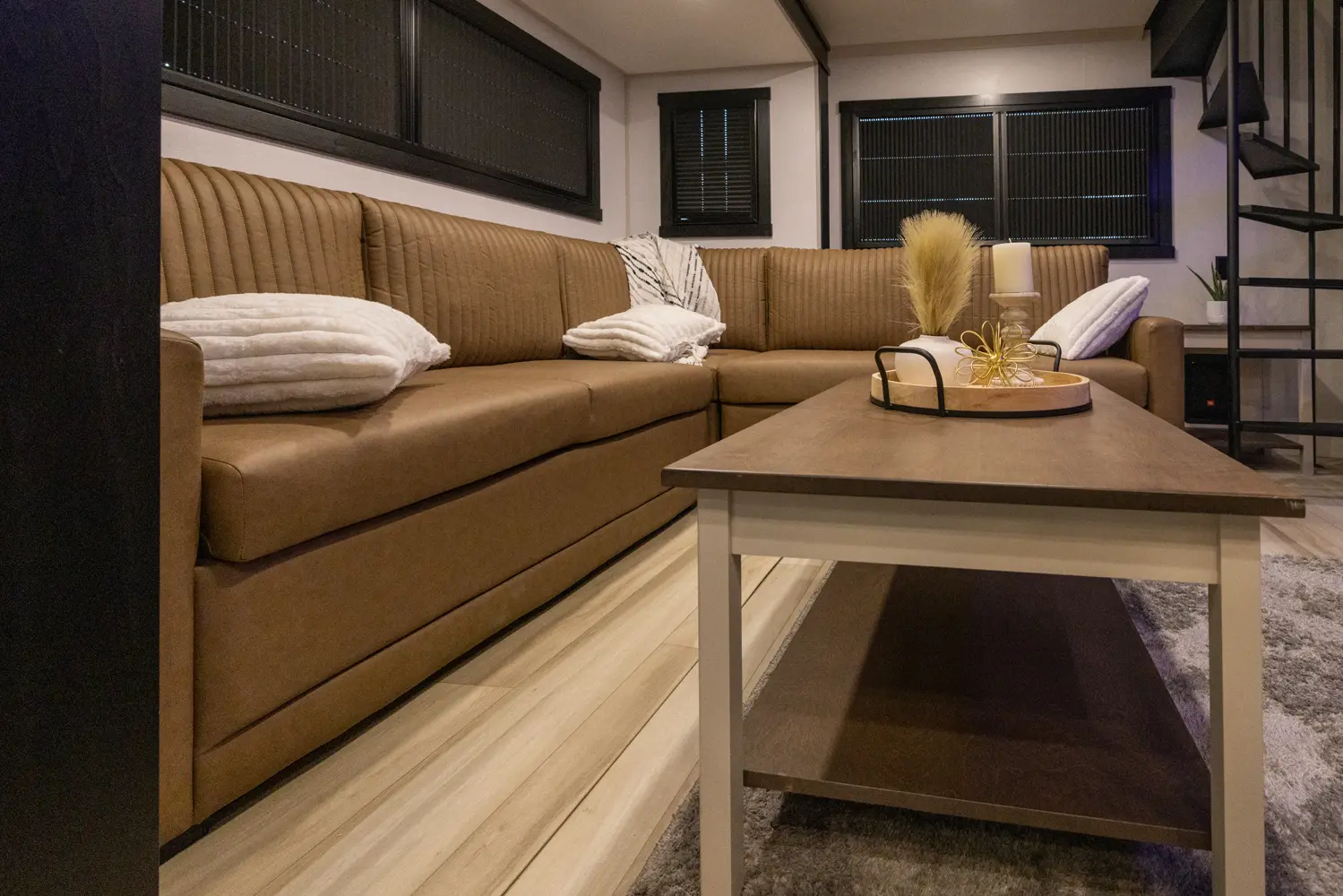 The ROOST43 provides a new segment to the RV market with a combination of a destination trailer in fifth wheel form. This creates the opportunity to move from locations easier than bumper pulling and provides the most square footage in this segment of RVs (530 Sq.Ft. compared to 399 Sq.Ft.). The ROOST43 is feature packed with residential style kitchen appliances, HUGE rear den, two lofts, bath and a half, laundry room, and an elegant interior design. The ROOST43 is will set a new era for RVing.