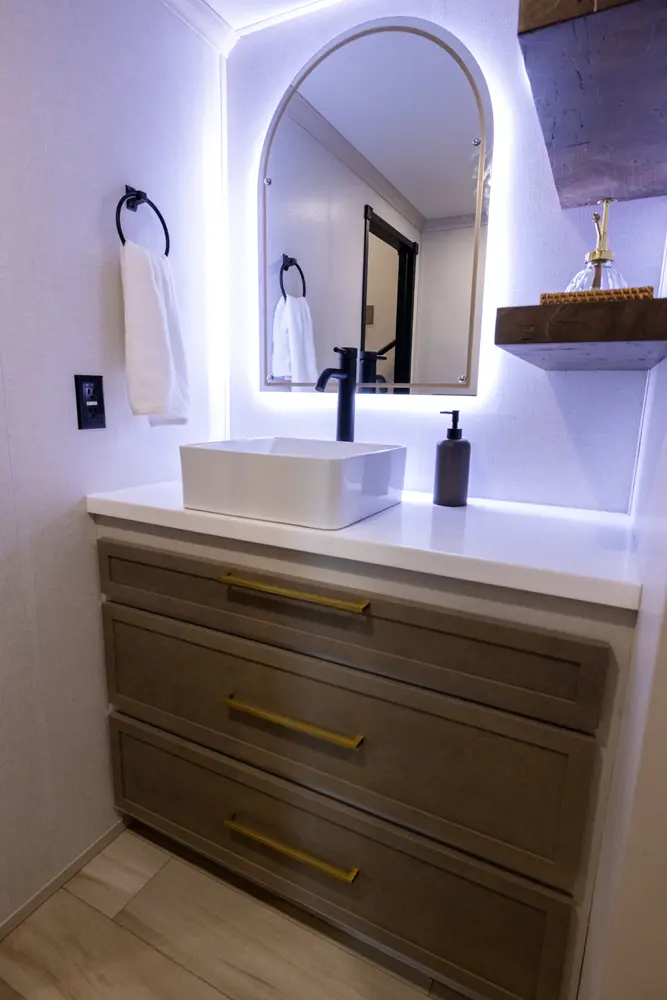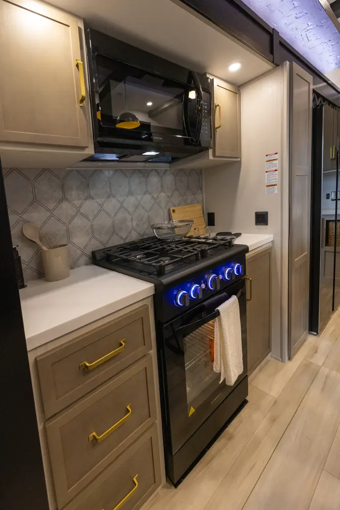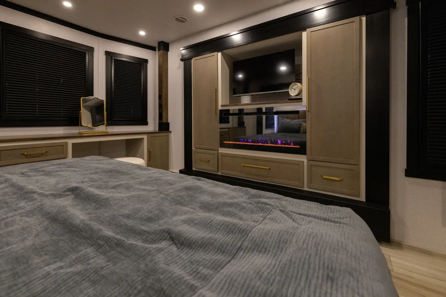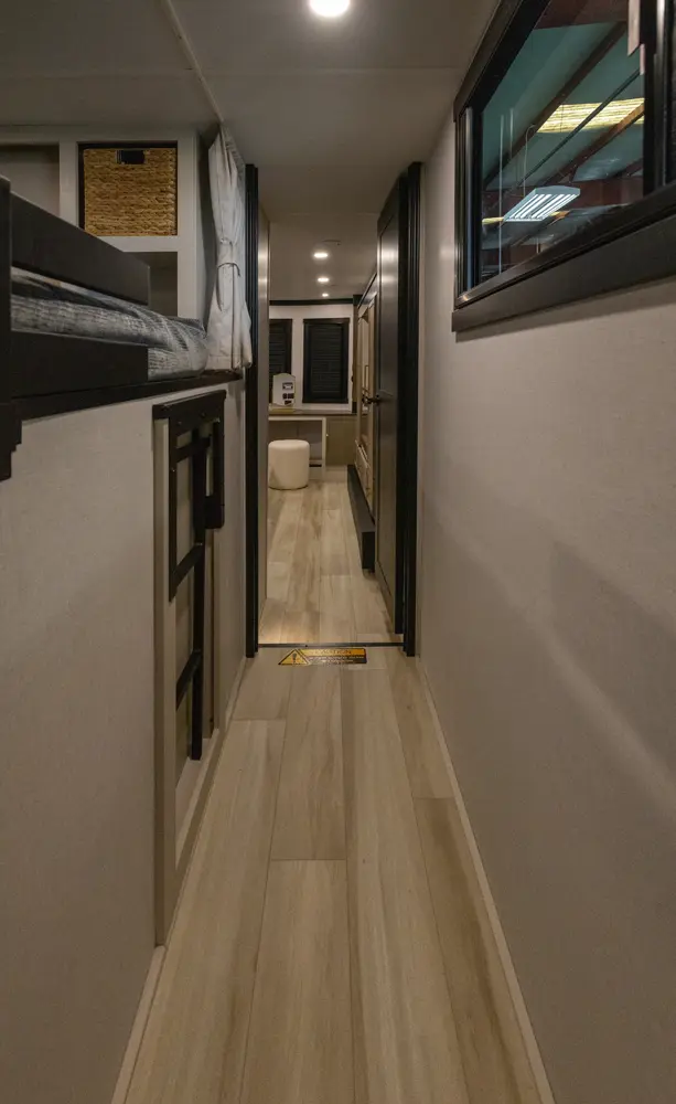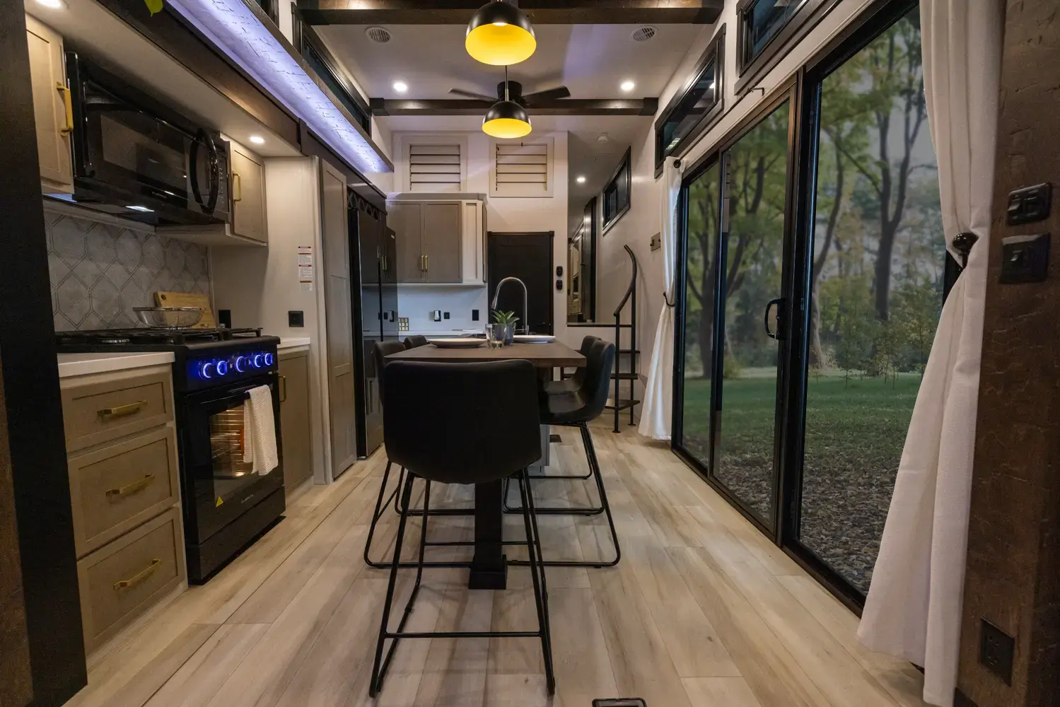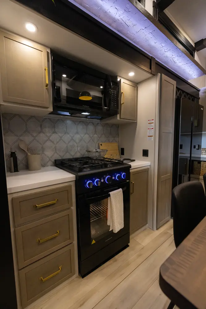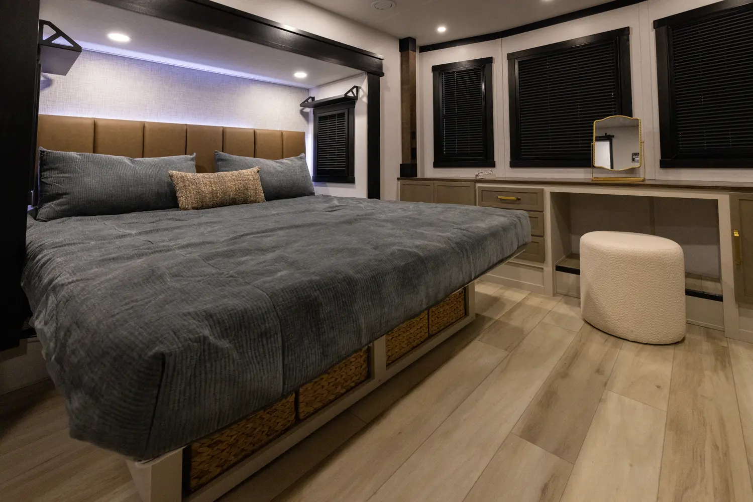 The ROOST43 provides a new segment to the RV market with a combination of a destination trailer in fifth wheel form. This creates the opportunity to move from locations easier than bumper pulling and provides the most square footage in this segment of RVs (530 Sq.Ft. compared to 399 Sq.Ft.). The ROOST43 is feature packed with residential style kitchen appliances, HUGE rear den, two lofts, bath and a half, laundry room, and an elegant interior design. The ROOST43 is will set a new era for RVing.
