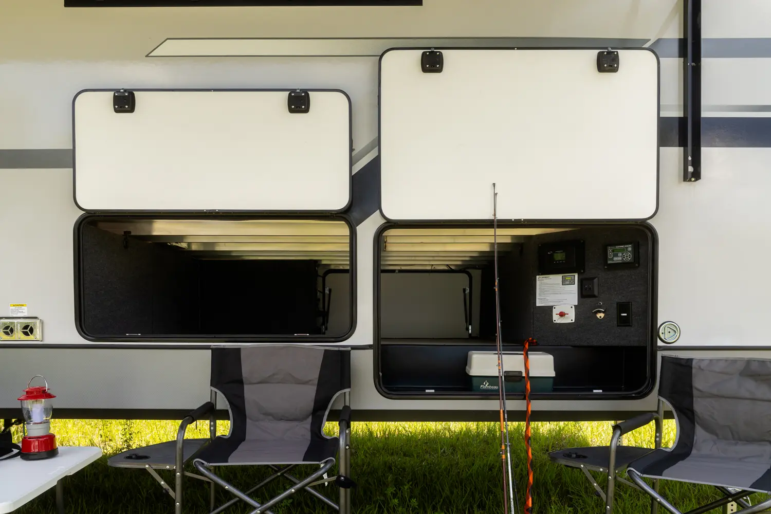 • Extra Large Pass Thru Storage with Metal Slam Latch Baggage Doors