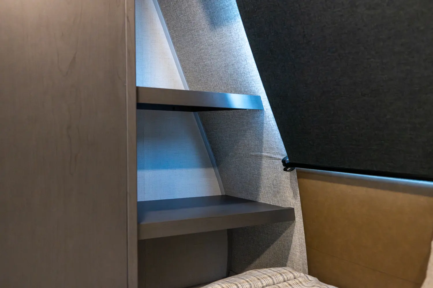The 26BRE features an innovative layout with a front queen bedroom with dual wardrobes, and provides ample storage space. The central kitchen includes modern appliances, including a large refrigerator and air fryer microwave, while the Bar 2 Table feature converts from a bar into a four-person dining table. The 26BRE includes an enclosed underbelly with forced heat, radiant foil insulation, and 12V heating pads on all tanks. Complete with a 20' power awning and rugged construction.