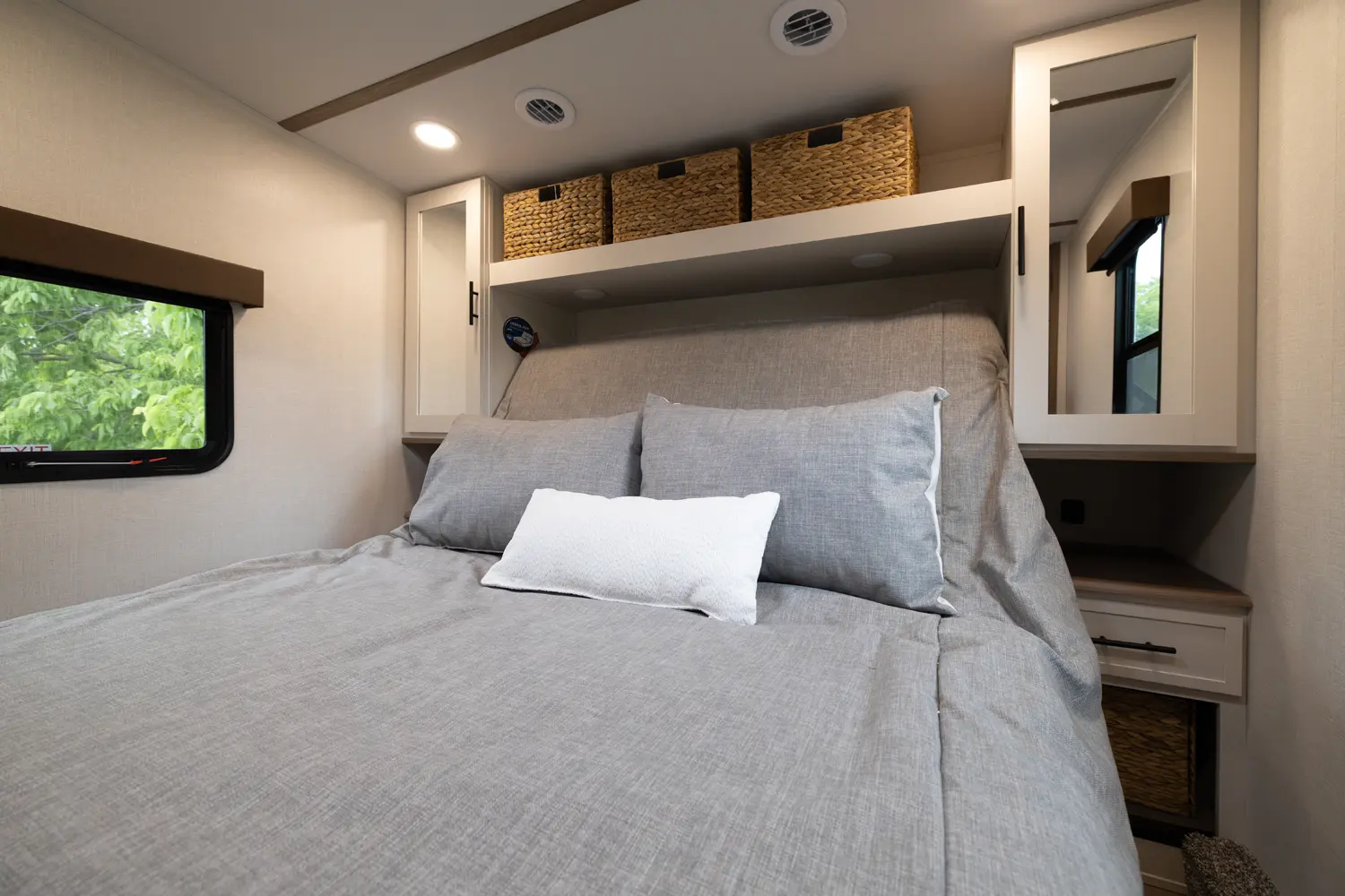 • 110 Outlet & 12V Charging Ports Beside Bed