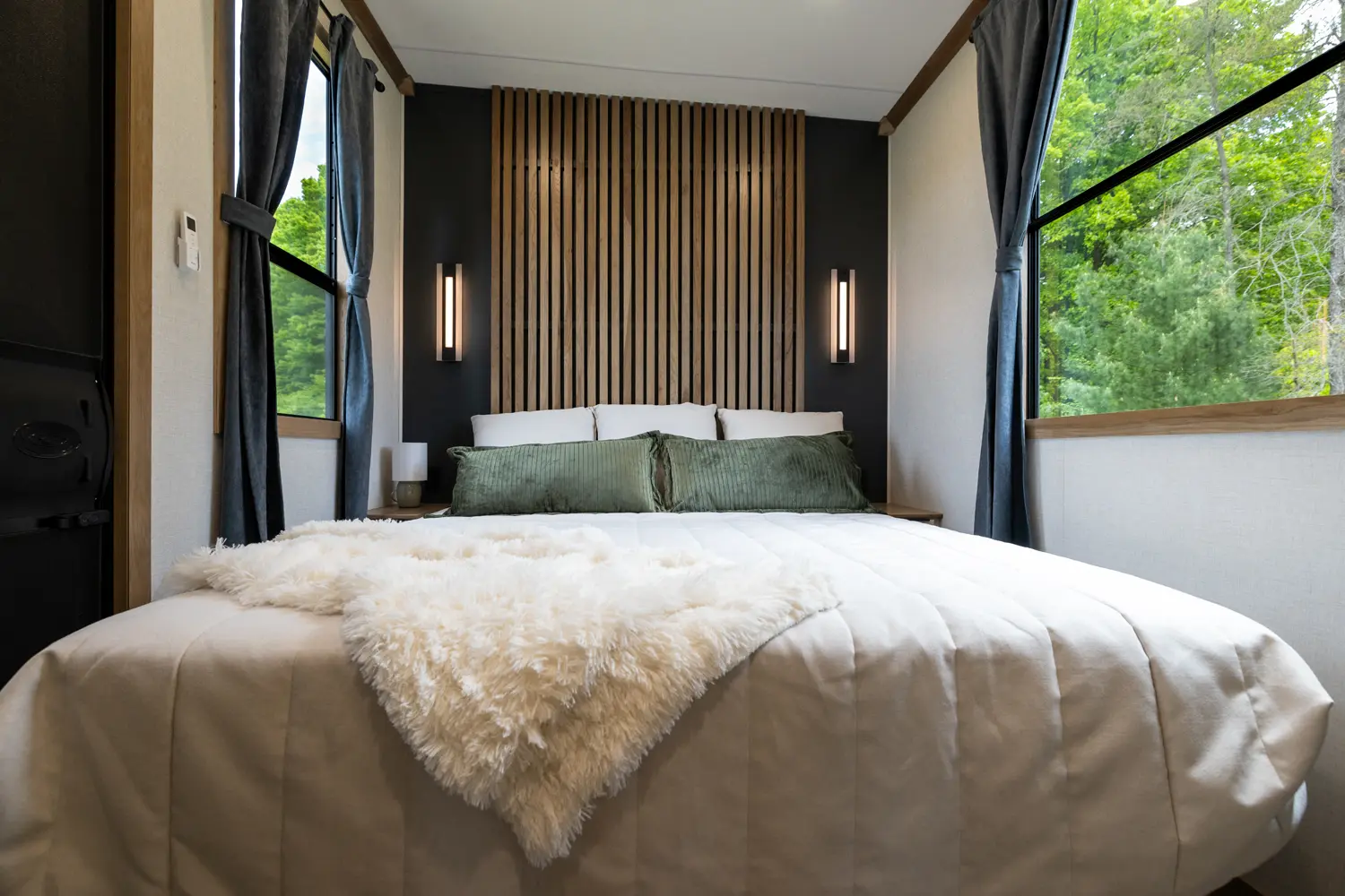The Sequoia sets a new standard with its innovative slide-less floorplan, boosting efficiency and reducing maintenance. Inside, the galley kitchen features premium appliances, solid-surface countertops, and hardwood cabinetry. A spa-inspired bath, dual-closet bedroom, and expansive storage highlight its modern and functional design, delivering luxury and innovation in every detail.
