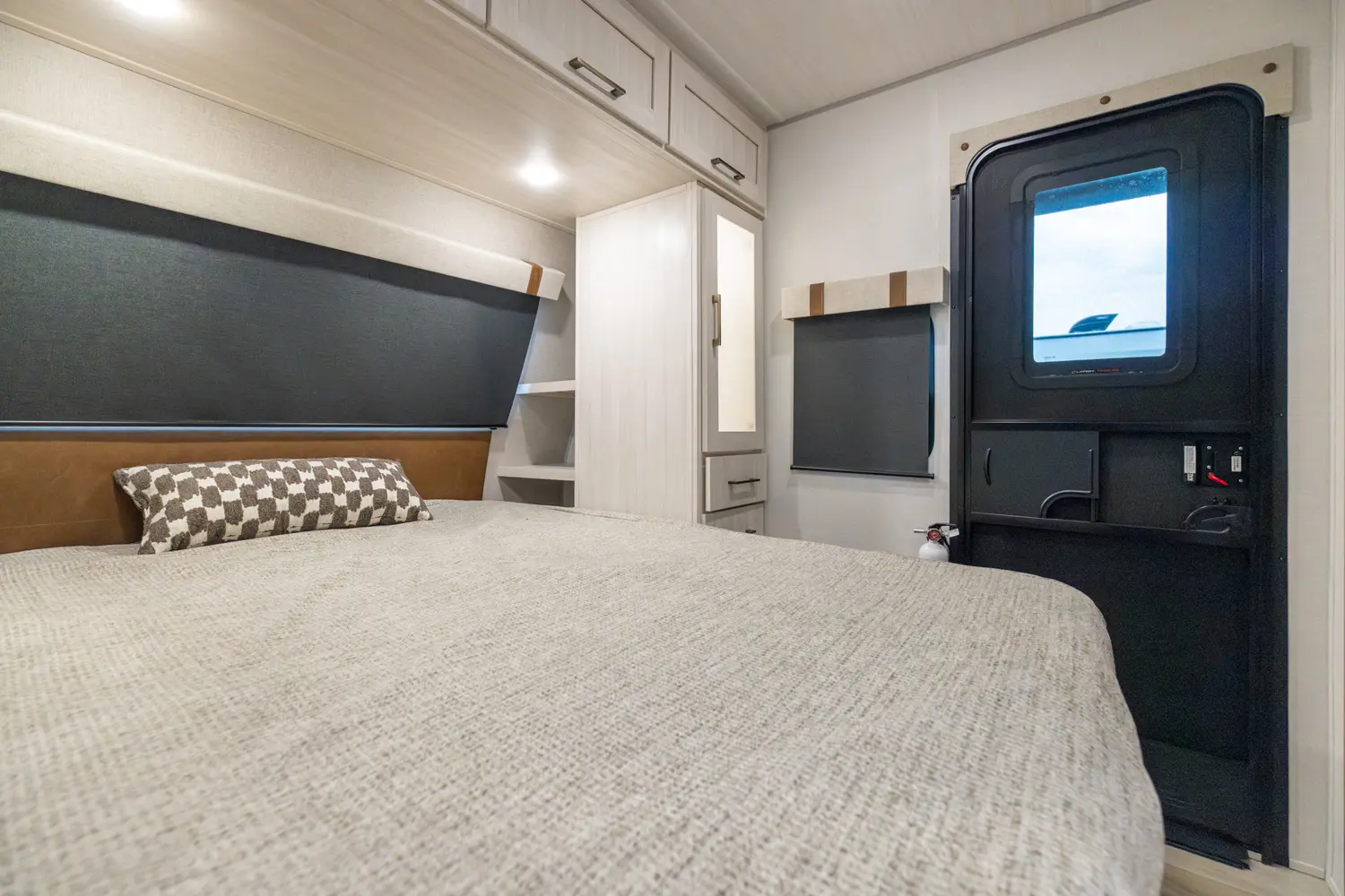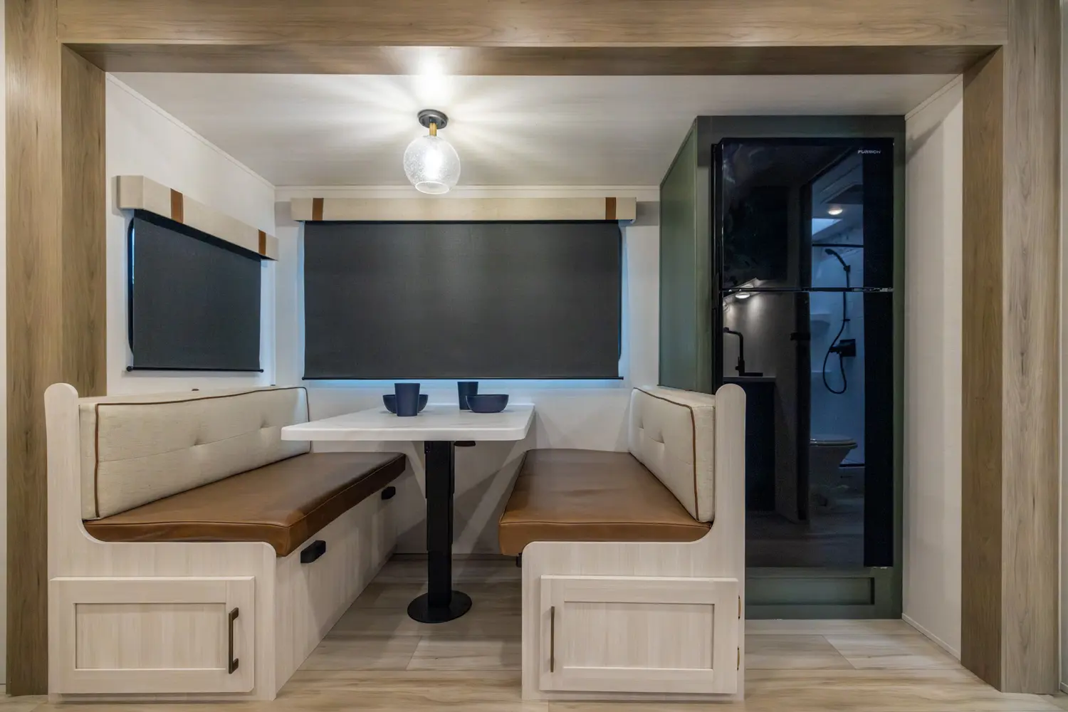 Spacious and family-friendly, this travel trailer features a front queen bedroom with dual wardrobes, central kitchen with large fridge and air fryer microwave, booth dinette slide-out, rear double bunks, and walk-through bath. Built for extended-season use with heated enclosed underbelly, radiant foil insulation, 12V tank pads, 21' power awning, outdoor griddle, and pass-through storage, ready for any adventure.