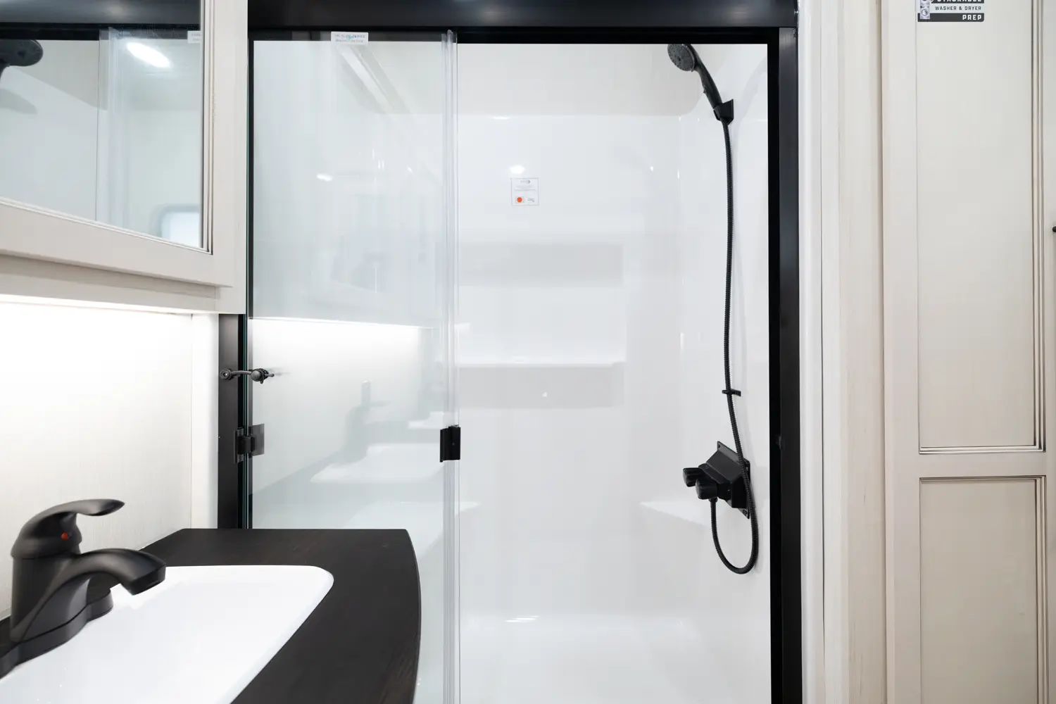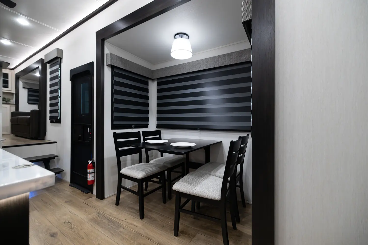 Discover the Forest River Sabre 37FLH, a luxurious 5th wheel RV designed for entertaining! This stunning front living room layout is perfect for movie nights or extra sleeping space, featuring two tri-fold sleeper sofas. The private owner’s suite includes a spa-like full bathroom, while a convenient half-bath adds extra functionality. The chef-inspired kitchen boasts premium solid surface countertops, a 12-volt fridge, air fryer microwave, large oven, and handcrafted real wood cabinetry.