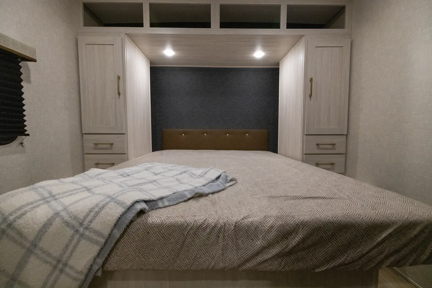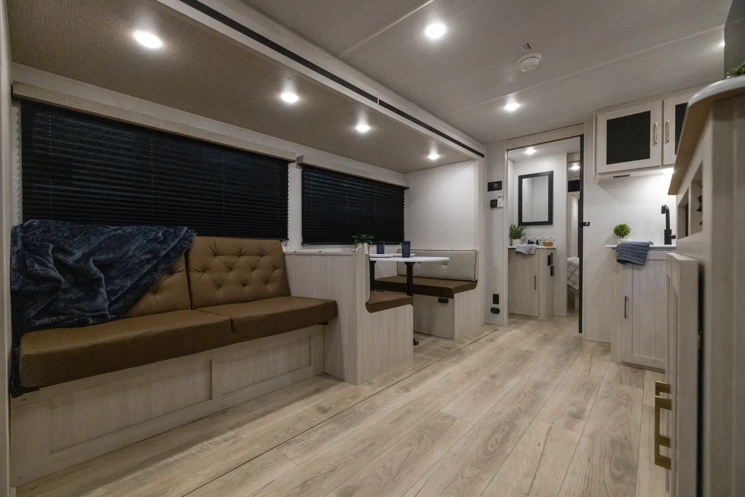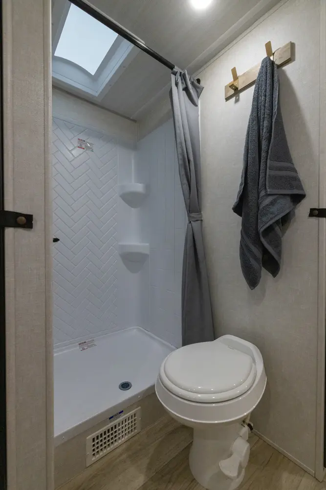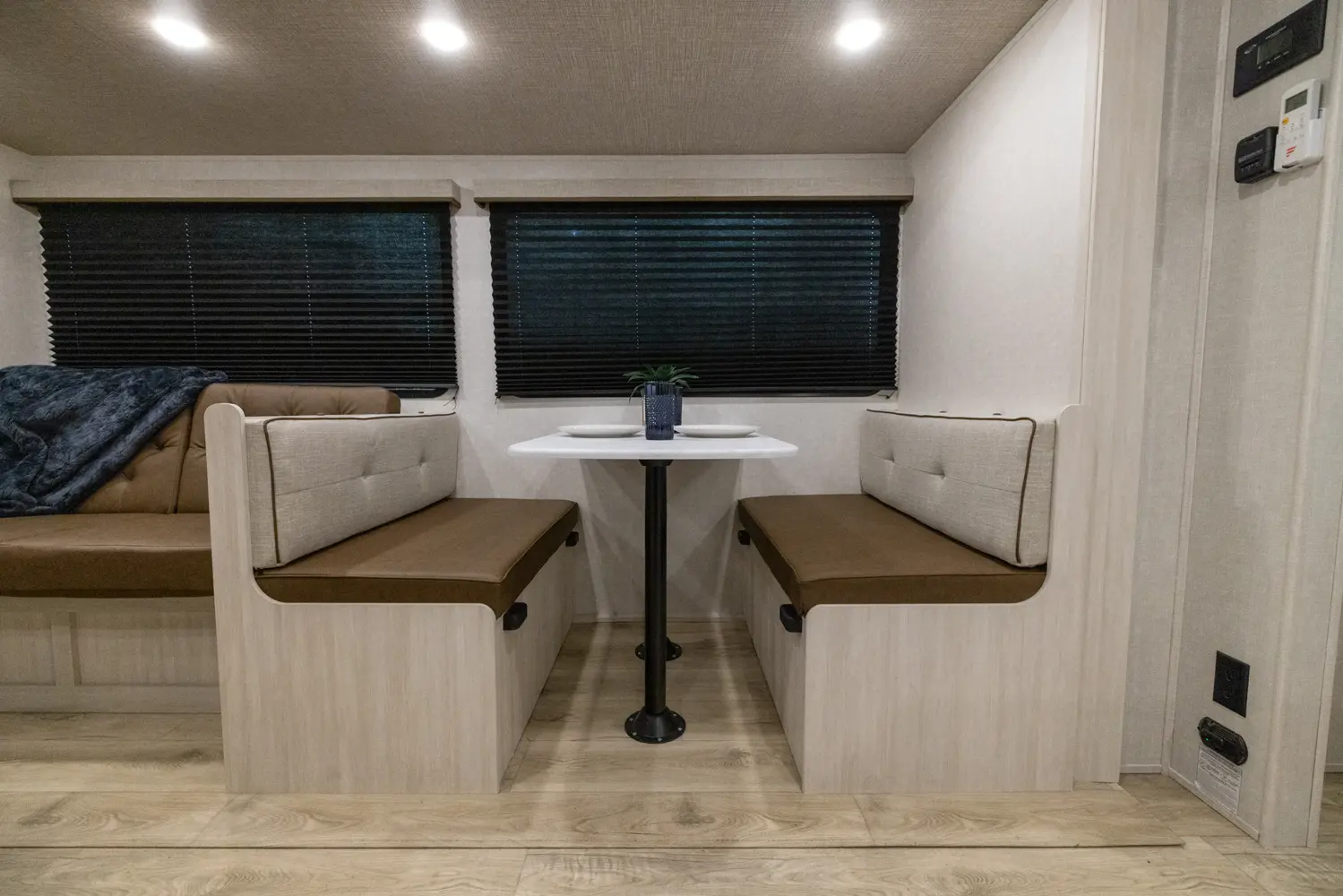 The Surveyor Legend X 29CAMP floorplan has one entry and one slide out. Exterior features include: fiberglass exterior and 21' awning. Interiors features include: bunk beds, front bedroom and pass through bathroom.