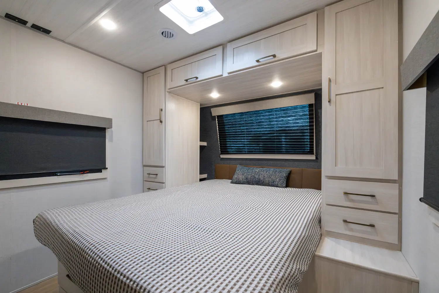 Sleeps up to 4-6. Need tow vehicle rated at 5800 lbs. or more. This self contained Destination camper is very intelligently laid out and spacious, featuring; a deep dinette slide-out, with jackknife sofa or optional Exclusive TSS tucked perfectly on the bedroom privacy wall. The washroom has tremendous storage as does the walk in pantry! And if outside is calling, the 252RBLE has our outside cookhouse kitchen, second to none!