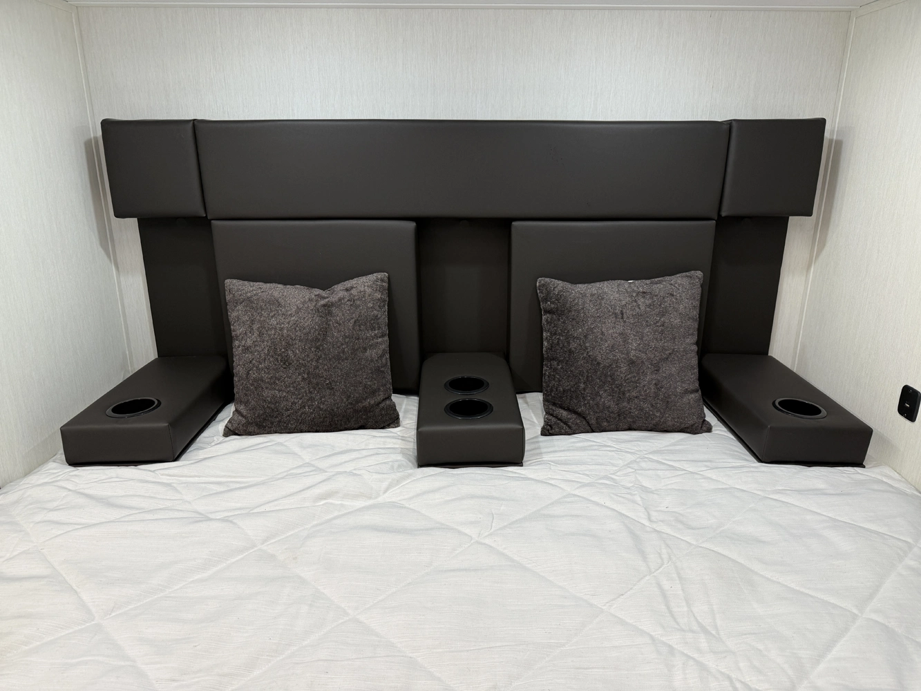 • Exclusive Padded Headboard with Flip Down Arm Rests